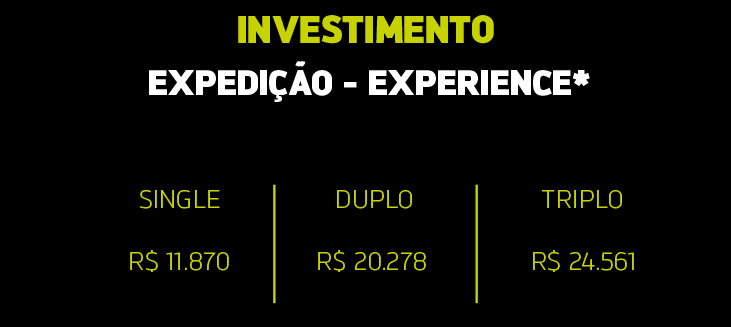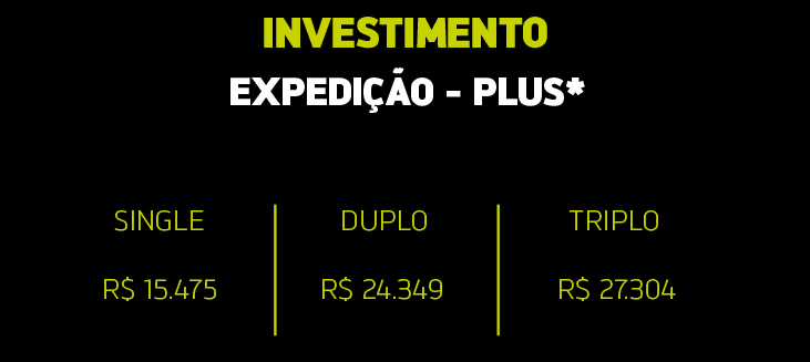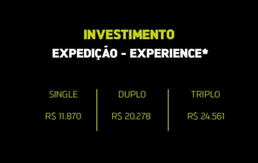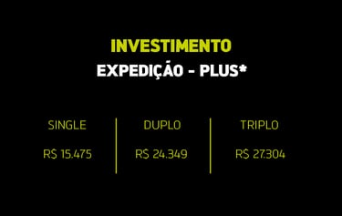 CONFIRA AQUI OS VALORES DA EXPEDIÇÃO COMPLETA + HOSPEDAGENS EXPERIENCE OU PLUS